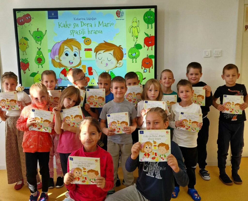 Na satu Hrvatskoga jezika prvašići su s veseljem pročitali slikovnicu „Kako su Dora i Mario spasili hranu” i pritom naučili koliko je važno čuvati hranu i smanjivati otpad.