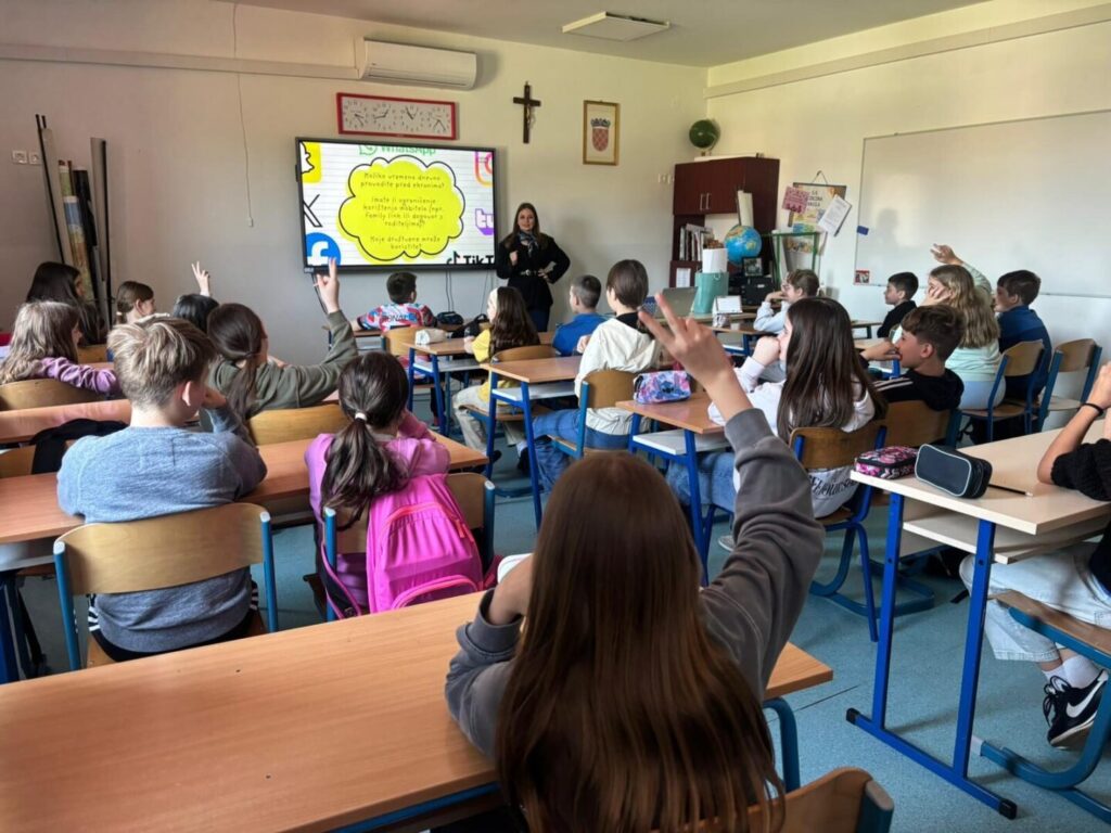 Dana 7. travnja 2026. u našoj školi održane su četiri radionice za učenike petih i šestih razreda te predavanje za učitelje i roditelje u sklopu projekta MZOM Medijska pismenost. Naša škola kao partner u projektu, ugostila je Izvanrednu profesoricu na Sveučilišnom odjelu za komunikologiju Lanu Ciboci Perša.