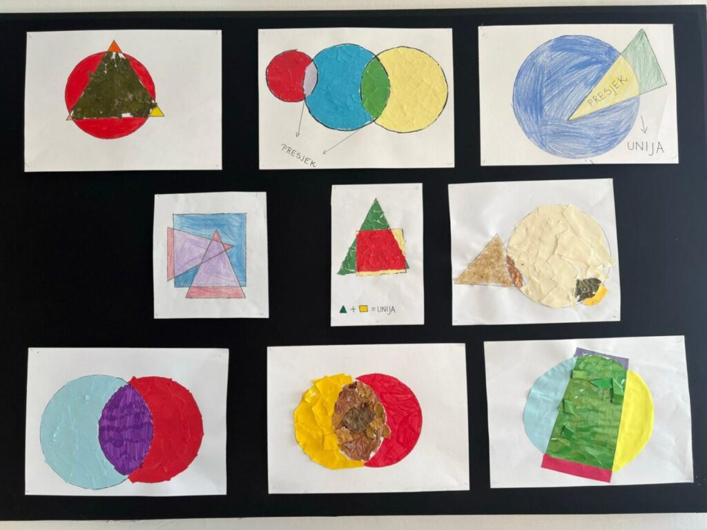 Na satu A2 matematike učenici petog razreda sudjelovali su u kreativnoj i poučnoj aktivnosti na temu unije i presjeka skupova. Sat je povezivao matematiku i likovnu kulturu, čime je učenicima omogućeno da apstraktne matematičke pojmove istraže na konkretan, slikovit i stvaralački način.